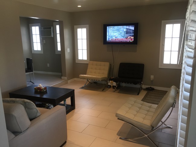 TOTALLY REMODELED SILVERLAKE 1bed Duplex Lower units in 5-unit building. Street Parking. Feels like its your own home no apartment style living here. This is one unit in a DUPLEX (downstairs unit). 1 BEDROOM + Dinning room+ DEN(office) brand new everything- unit was fully gutted and renovated. (New: Stainless steel stove, Fridge, air conditioner/heater) fully renovated bathroom + brand new soft touch custom kitchen cabinets + Backyard + Garage + Parking space + backdoor entrance/exit. Has its own address, serene, quiet street. Lovely living Fully renovated, New Ultra Modern Tile throughout the unit, New Paint, frosted glass doors. Has lots of windows and gets great sun and breeze. Literally located 1/2 a mile from the reservoir & dog park. Literally located 1/2 a mile from Intelegencia and all things Sunset junction. Quiet tranquil street, walk everywhere and be near everything. This is the most desired location in all of Silverlake.