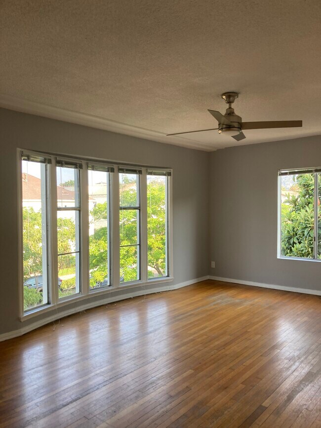 Fairfax Village near the Grove. Spacious 1 bedroom, one bathroom apartment, upper unit. Beautiful bay windows provide tons of natural light. Hardwood floors throughout & kitchen is renovated including new cabinets, new tile floor, dishwasher, new white quartz countertop, stainless farmhouse sink & faucet. Bathroom is fully renovated w/new tile floor, vanity, mirror, shower doors & modern fixtures. Lots of closet space w/walk-in closet in large living room. Quiet building with great neighbors. Pets are always welcome. Awesome neighborhood for walking, shopping, restaurants & 5 minute walk to the Grove.