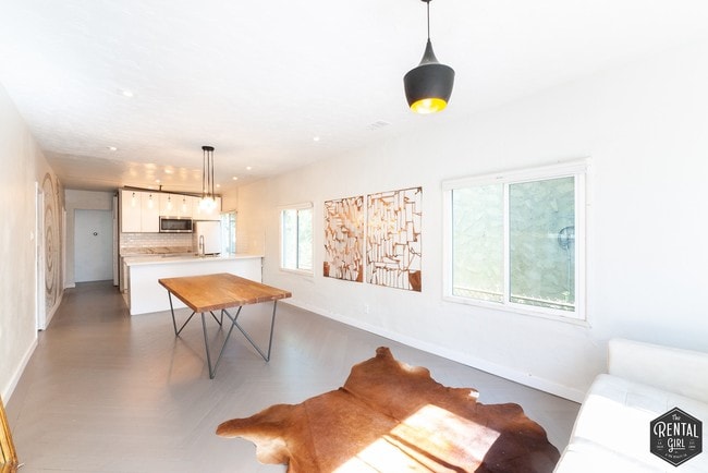 This is an architectural beauty in the heart of East LA! Let's talk about how modern and updated this single-family home is. New sleek bamboo wooden flooring is throughout with both bathrooms and the kitchen also being completely updated. Walk-in and be greeted with sleek lines and minimalist design. The living room is bright thanks to the many windows and cool lighting fixtures. The kitchen opens into the living/dining room to make entertaining a breeze. The three bedrooms are spacious and similar in size. The bathrooms are jawdropping. One restroom features a large soaking tub, while the second restroom has the stand-alone shower. Oo la la Head outside because this is where you will be spending half of your time. The large gated and private backyard is perfect for housing your vehicle and/or hosting friends and family. Add a farmhouse table, more string lighting, and you're set. Oh, I almost forgot to mention you have your very own mature lemon tree now. With a lemon tree comes certain responsibilities. This can include making lemonade 24/7, cooking lemon pepper chicken or lemon custards, and gifting baskets of lemons to friends, family, and your fave LA realtor... Happy Summer! The home has secured entry and is a total stand out on it's quiet and quaint street thanks to the exterior artwork by Tarek-Vincent Lézavu. Did we mention he also did calligraphy work for the interior first floor of the SLS Hotel of Las Vegas as well?! How Cool! Parking is available in the backyard, and you have central AC/Heat. What more could you ask for? Enjoy your hip new home (we're jealous)!