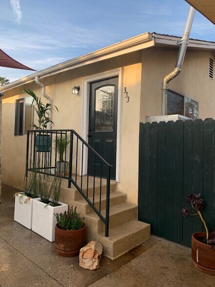 2 bedroom 1 bath home on quiet block. It was just painted so some of the windows are covered in the images and Hardwood floors were recently refinished. Stainless steel appliances (fridge, dishwasher, stove). Lighting on dimmers throughout the unit. Energy saving LED lighting. This is a 4 unit building but this house is in the rear of the property and it is free standing. A garage will be included with this rental. There is also a private patio area to this space. Walkable area to restaurants and shops and a short walk to Sunset Blvd. This is a pet friendly unit. There is no parking or laundry onsite.