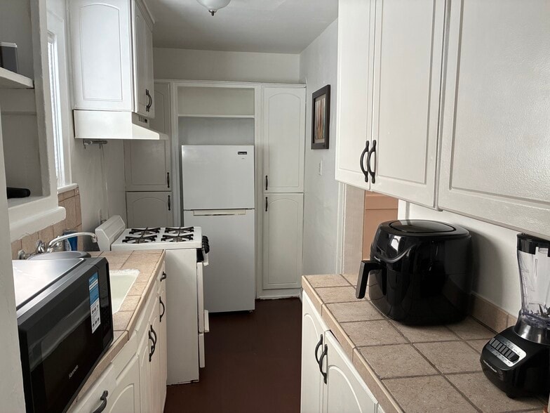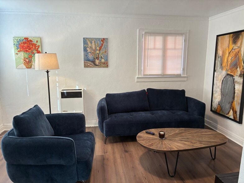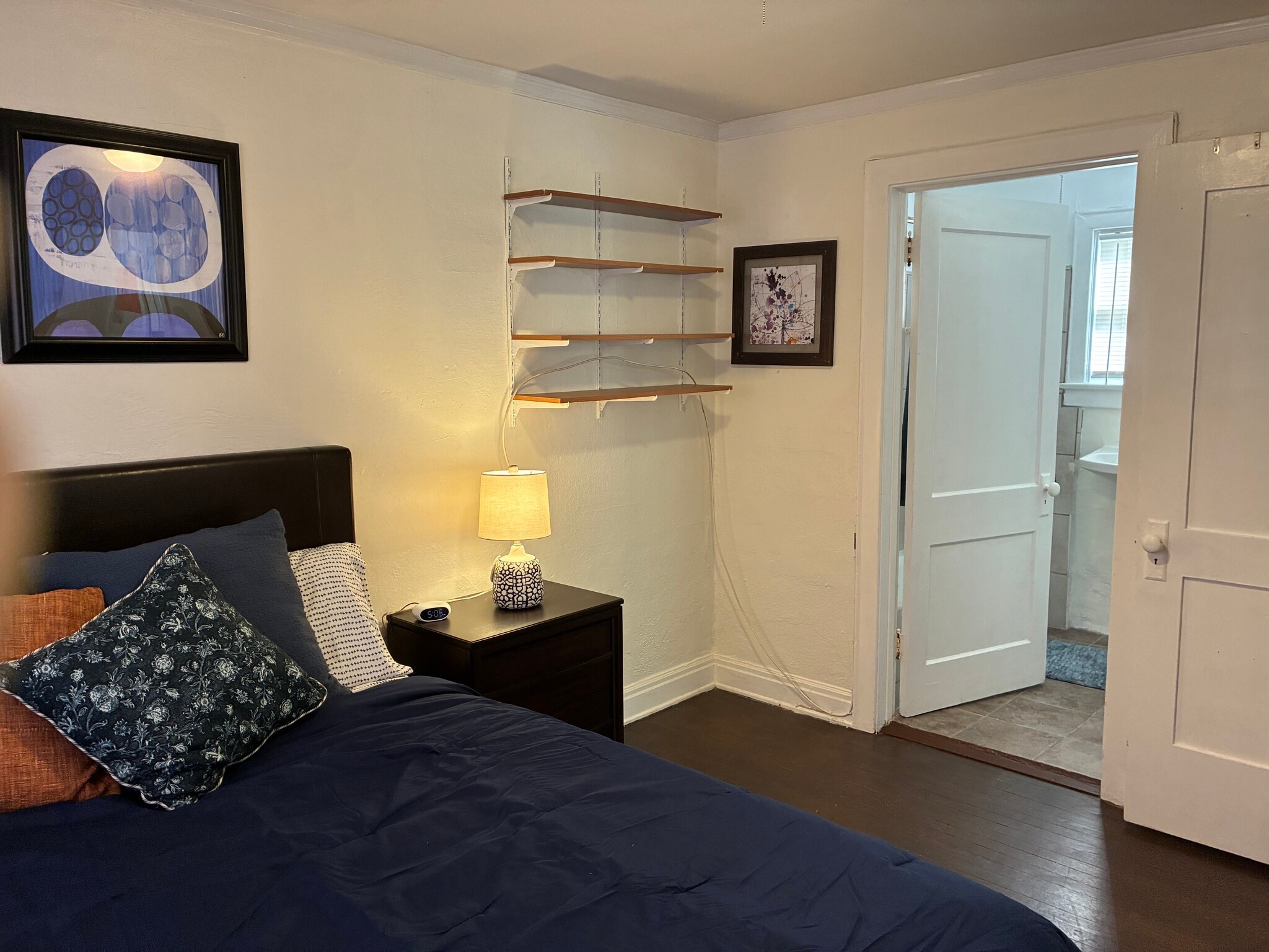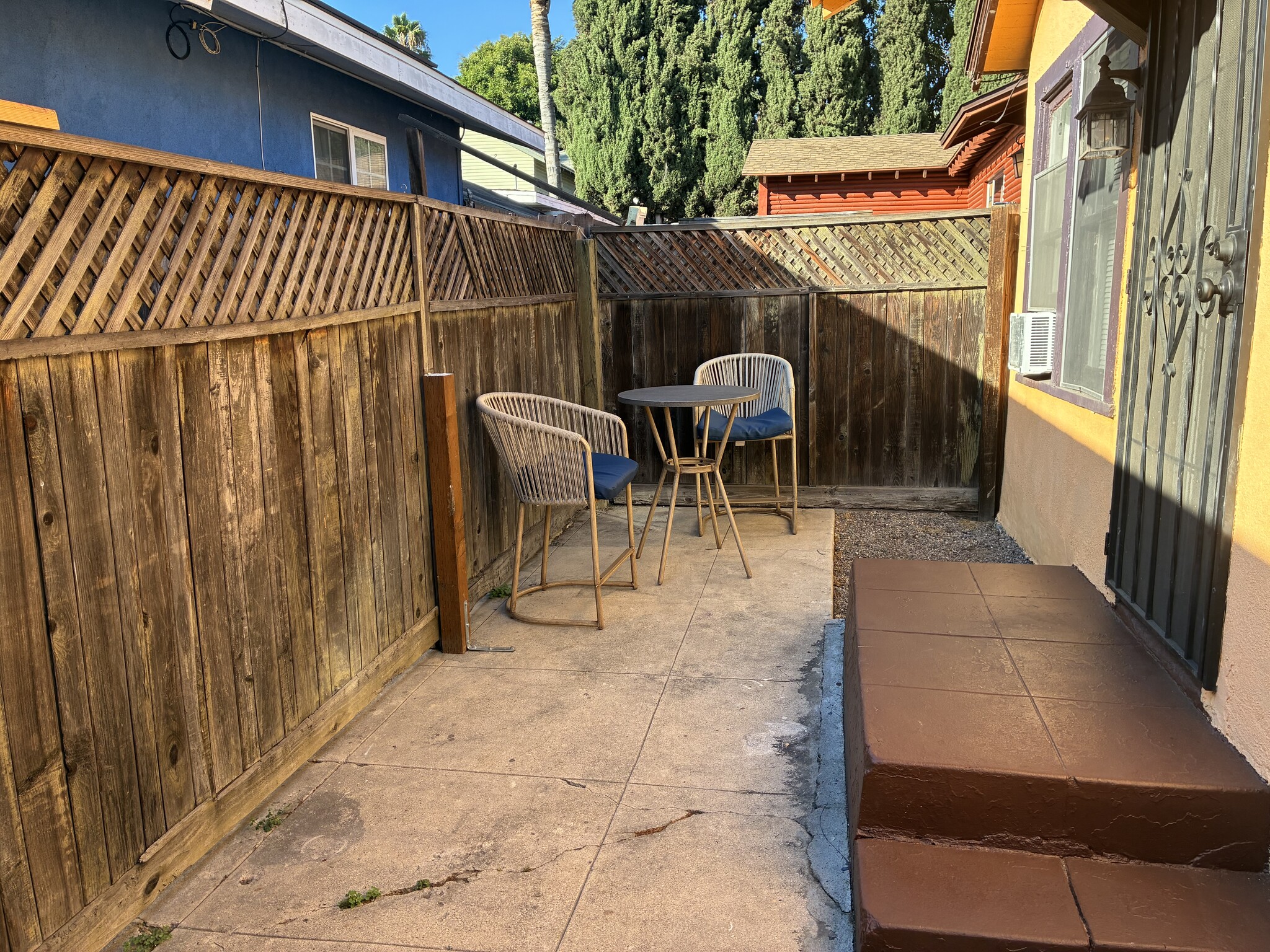 This is a one-bedroom, one-bath freestanding cottage with no shared walls, which is rare and a big plus for privacy. The layout makes the most of the space, with a cozy living area, separate kitchen, and direct access to a private patio that's fully fenced in. Inside, the place is fully furnished and ready to go from the loveseat and smart TV in the living room to the queen-sized bed and full bedding setup in the bedroom. The living area has two window A/C units to keep the space cool, and wood and laminate floors throughout. The kitchen is compact but stocked with everything you need: refrigerator, stove, microwave, air fryer, blender, coffee maker, plates, utensils, the works. It also has tile countertops, open shelves for easy storage, and a window above the sink that brings in natural light. The bedroom has a closet and sits just off the bathroom, which features a shower-tub combo, single sink, and classic tile. Out back, there's a small private patio with a bistro table and two chairs, enough space to hang out, read, or have a drink outside. The washer and dryer are located in an exterior shed shared with just one other unit, and while parking is street-only, it's usually easy to find a spot. Best part? Utilities are included, and pets are welcome, so you can just show up and settle in without worrying about setup costs. Lemon tree and avocado tree on the property. This part of Silver Lake is tucked just a few blocks from Sunset, so you're close to coffee shops, bars, and all the local favorites without being right on top of the busy streets. It's a walk-friendly area with hillside views, tree-lined roads, and a mix of old bungalows and modern builds. Echo Park is nearby, and its a quick drive or bike ride to DTLA or Koreatown. The vibe is relaxed and neighborly, with a strong creative crowd.