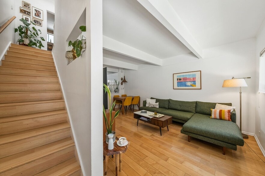Available May 15th! 2 bed/1.5 bath townhome located in a gated community in Mar Vista. Surrounded by mature greenery, this home offers a comfortable layout with indoor-outdoor flow and convenient access to the best of the Westside. The main level includes an open living, dining, and kitchen area with wood-beam ceilings, a powder room, and in-unit laundry. The kitchen features stainless steel Whirlpool appliances, solid-surface countertops, and a designer tile backsplash. Just off the living space, the private patio offers a great spot for outdoor dining, entertaining, or relaxing. Upstairs are two bedrooms, a full bath, and abundant built-in storage. Wood and tile flooring run throughout for a clean, low-maintenance finish. Community amenities include a pool, spa, and gated courtyard. The unit also comes with a one-car garage with storage and an additional gated outdoor parking space. Ideally situated near neighborhood shops, restaurants, and the Mar Vista Farmers Market, this townhome offers convenience, outdoor space, and a desirable Westside location. Trash included. Tenant to pay water, gas, electricity, internet.