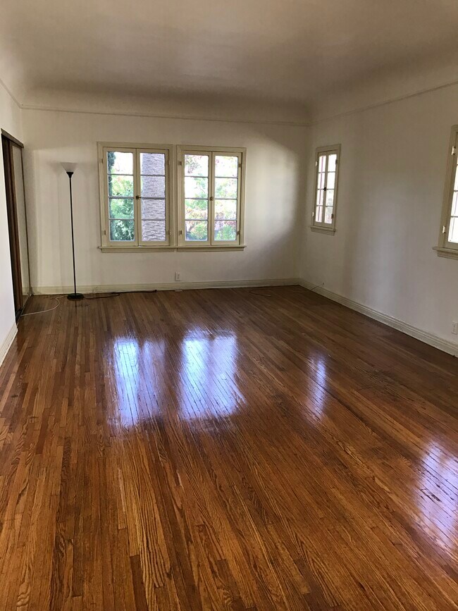Two bedrooms upstairs apartment with balcony. Hardwood floors, recently upgraded appliances, air-conditioning, freshly painted. Washer and dryer in the unit. One car parking in the back. Great location, walking distance to The Grove and Fairfax.