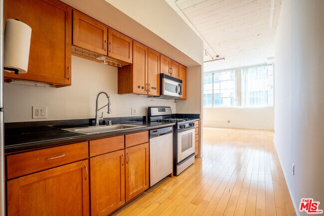 Step into a sanctuary of modern luxury and unparalleled charm with this expansive live/work loft, ideally situated in the vibrant heart of Little Tokyo. This exceptional space boasts a thoughtful open-plan layout, designed to foster a sense of boundless freedom and creativity. High ceilings amplify the sense of space, while rich wood flooring adds a touch of warmth and elegance throughout. The loft features large, industrial-style windows that flood the interior with natural light, offering inspiring city views and a perfect backdrop for both living and working environments. The kitchen, equipped with modern appliances, merges seamlessly with the living area, making it an ideal space for entertaining or relaxing. Unique to this unit is the convenience of an in-unit washer and dryer, adding to the comfortable and effortless lifestyle it offers. The absence of dividing walls in the bedroom area creates a versatile and airy space, ready to be tailored to your personal or professional needs. Residents of The Little Tokyo Lofts enjoy access to a suite of premium amenities including a refreshing pool, a barbecue area for social gatherings, a soothing hot tub, and a well-equipped gym. Security is a priority here, with comprehensive services ensuring peace of mind. Additionally, this unit comes with a dedicated parking space and ample guest parking, a coveted feature in downtown settings. This loft is not just a home, but a lifestyle choice for those who seek balance, luxury, and accessibility in one of the most sought-after locations in the city. Whether you are an artist, a professional, or someone who loves to blend home and work life seamlessly, this loft is designed to meet every need with style and convenience. Take the opportunity to own a slice of downtown paradise, where every detail is crafted for supreme comfort and every amenity is just a step away. Schedule your visit today and experience urban living at its finest!