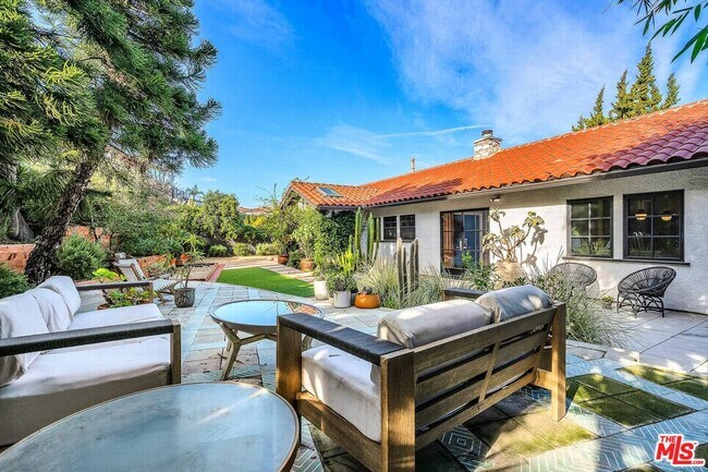 Updated Spanish hacienda style home in Baldwin Hills is perfect for entertaining with large open concept areas and indoor-outdoor flow from the entrance courtyard, through living and dining and out through the French doors to lusciously landscaped rear yard retreat area. There is a Meyer lemon tree, a passionfruit vine, an apple tree, blueberry bushes in the front, a peach tree, a kumquat tree and a baby pomegranate tree among the foliage. Wide plank wood floors throughout the living spaces, new double paned windows, new doors, security system, light and bright feel throughout the home and privacy! It's truly a Shangri-La! Top of the line Chef's kitchen features a large island with quartz countertops and breakfast bar seating comfortably for 4, double farmhouse sink, high quality custom cabinetry and high end finishes. Full laundry room and 3/4 guest bathroom off the kitchen hall. Primary suite features large ensuite bathroom with dual vanity, large shower, WC and walk-in closet. Two additional bedrooms with shared hallway bathroom. Plus a great bonus space off the dining area that could be used as a 4th bedroom, office or den. Two car garage with EV charger and direct access to kitchen hall. Rooftop deck over the garage has view of the Hollywood sign accessible from stairs in the entry courtyard. Property is fenced and fully enclosed. MLS# 26636479