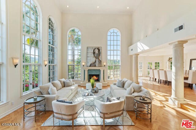 Experience one of the premier Italian Mediterranean estates South of the Blvd, ideally situated behind gates on a private road in the highly coveted Lanai School District. This exceptional location offers the best of Encino living--close to premier dining, shopping, the Westside, and major freeways--while still providing privacy, security, and a true neighborhood feel.A grand two-story foyer welcomes you into an open floor plan with soaring cathedral ceilings and generous living and entertaining spaces. French doors throughout the home create seamless indoor-outdoor flow to multiple balconies, terraces, and beautifully landscaped grounds. The formal living and dining rooms, walk-in wet bar, and expansive family areas make this home ideal for large gatherings and elegant entertaining.The gourmet kitchen features a Sub-Zero refrigerator, center island, butler's pantry, and two dishwashers, offering both functionality and convenience for hosting. Upstairs are 6 en-suite bedrooms, including a spacious primary suite with sitting area and fireplace, two walk-in closets, and a luxurious bath with dual vanities. Additional highlights include a private study with built-ins, a gym with steam shower, guest suite, maid's quarters, and custom wood floors.The resort-style grounds include a pool, spa, large lawns, gardens, fruit trees, and an interior courtyard with a tranquil water feature--perfect for relaxing or outdoor dining. A 3-car garage and ample parking complete the property.An extraordinary estate on an expansive lot in one of Encino's best locations--ideal for both families and entertainers seeking space, convenience, and top-tier schools.