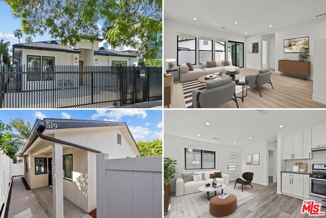 A rare opportunity to lease a brand-new (2025) private gated compound in the heart of the Fairfax District, just two blocks from iconic Melrose Avenue. Designed with clean lines, high ceilings, wide-plank flooring, and oversized windows that flood the interiors with natural light, this single-level gated compound features two individual modern residences for exceptional flexibility rarely found here. The main residence at 521 N. Martel Ave. offers 2,100 sq. ft. with 4 bedrooms and 4 baths. The spacious primary suite includes a luxurious en-suite with a walk-in shower, dual vanities, a private toilet room, and a generous walk-in closet. The detached guest home at 519 N. Martel offers 761 sq. ft. with 2 bedrooms and 2 baths, its own private entrance and address, perfect for executive office space, creative studio, extended family, staff quarters, visiting guests, or a fully separate work-from-home environment. A beautifully landscaped courtyard and private outdoor spaces connect the homes, delivering seamless indoor-outdoor flow for entertaining, relaxation, and year-round California living. This is a special opportunity for those seeking privacy, versatility, and refined modern luxury in a prime location. Be the first to call this newly built compound home. Some photos are virtually staged and digitally rendered for illustrative purposes. MLS# 26642119