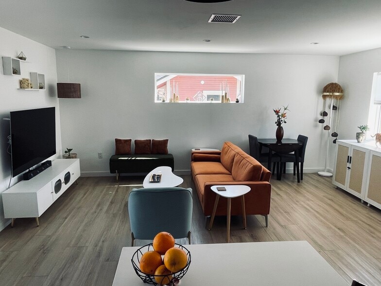 **Available for Rent between June 20 - August 20th, 2026** This house sleeps 4 people! We have a master bedroom with a Queen-sized bed, a guest bedroom/office with a fold-out sofa double bed (both versions are pictured), and a dedicated office room as well. This house is perfect for professionals who work remotely, a couple with 1 or 2 children, or 2 couples. We are foodies, so the kitchen is stocked with all the tools you need to make a great meal, including a dishwasher and toaster oven (however please note there is no microwave). The house was built in 2023 so everything is very new! It is fully furnished and includes a walk in closet and a wall-mounted TV. The house also has a beautiful outdoor garden and patio area with fruit trees, a grill and a vegetable garden! This house is located in El Sereno, South Of Huntington Drive, in a very old, quiet neighborhood in East LA lined with palm trees. We are 10 minutes away from USC Keck Medical Center and Cal State LA, and 15 minutes away from Highland Park! We are just a few minutes drive from fantastic local hiking spots Ascot Hills and Ernst E. Debs Park, and there are multiple taco stands and local eateries within a 2 mile radius. There are 7 grocery stores within a 10 minute drive, including a Costco. The house also comes with: parking (1 spot), central heat/air, laundry, walking distance to bodega, utilities and wifi included in rental rate. Please note that there are 3 stairs at the front door and that the hallway is not wide enough for a wheelchair. We are two filmmakers who are looking for renters that are clean and quiet to enjoy our home while we're gone. Please be aware that this is a "back house" and there are longterm tenants in the "front house" on the property. You have a fence for privacy, but will share a driveway with them. RENTAL REQUIREMENTS: Must stay at least 30 days, lease length can be between 1-2 months. If you are interested please tell me a little bit about yourself! Where you're from, why you will be in LA, what you do, etc etc. Before renting we will do a zoom interview with you, a credit and criminal background check on all adults that will be staying at the property ($29/per person), and ask for references. This is because we have other tenants on the property (in a separate house) who's safety we need to ensure. Refundable security deposit of $1800 required upon signing contract. Pets Policy: Pets will be allowed on a case by case basis. We have one cat but she will be traveling with us.