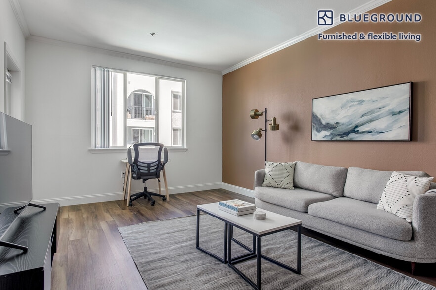 Feel at home wherever you choose to live with Blueground. You’ll love this lovely Playa Vista furnished one bedroom apartment with its modern decor, fully equipped kitchen, and exquisite living room. Ideally located, you’re close to all the best that Los Angeles has to offer! (ID #LAX1090) The advertised rate of $4,220/month is the lowest available price, based on a 2 month(s) and 1 day(s) stay with a move-in date of May 15, 2026. If you’re looking for a 1-year stay, the rate is $4,350/month. Rates vary depending on the duration of stay, season, and other parameters. For exact pricing and additional pricing components, please visit our website and enter your desired move-in and move-out dates. The rate is applicable when billed upfront; it can be higher if billed in multiple payments. Brokers are welcome to reach out. Were you looking for an unfurnished lease? Try Blueground instead and upgrade from unfurnished to furnished living: - Furnished at rates comparable to unfurnished - No setup or furniture costs - save thousands - Move-in ready - save time, just bring your suitcase Designed with you in mind Thoughtfully designed with bespoke finishes, modern furnishings, and a fully equipped kitchen, you’ll enjoy that “I’m home” feeling with this Blueground apartment. Whether you’re lounging in your pretty living room streaming the latest and greatest entertainment on the smart TV or premium wireless speaker, or getting some well-earned rest on the superior quality mattress with fully stocked linens, you’ll fall in love with everything this Playa Vista apartment has to offer. This apartment also offers in-apartment laundry. Sleeping arrangements King Bed, 70.8in/180cm Amenities Building amenities unique to this one bedroom apartment include an on-site: - BBQ Area - Dryer - Elevator - Swimming pool - Washing machine - Lounge - Media room - Parking - Pets allowed Arrival and ongoing support The entire apartment is yours to enjoy! Throughout your stay, you’ll have access to our Client Experience team through the Blueground App. You can schedule additional cleanings, submit maintenance requests, and view our neighborhood recommendations with just a few taps. We’ll share all details upon confirmation of your stay. Ideally Located This furnished property is located in Playa Vista, a newly built neighborhood on the westside of Los Angeles. The neighborhood offers office space to some of the biggest tech companies and attracts a mix of young professionals who seek to experience the Silicon Valley way of living. Nowadays, an increasing number of locals looking for an urban lifestyle, decide to relocate to Playa Vista and enjoy the shopping and dining. Runaway is the newest shopping area including a food market, movie theater and numerous retail outlets, an ideal destination for the weekends. With Playa Vista’s Daily Shuttle you can also get easily around the community. Other things to note Building amenities may have an extra cost. This Blueground apartment has flexible lease options, allowing you to book it for one month, a year, or more. Pets are welcome, though weight limits and breed restrictions apply and may incur fees. Parking is offered based on availability and is subject to a fee. We take great pride in ensuring every photo displayed is shot in our own units with our actual furnishings. That said, we regularly refresh our decor and furniture arrangement, which may differ from what’s pictured. [SI]