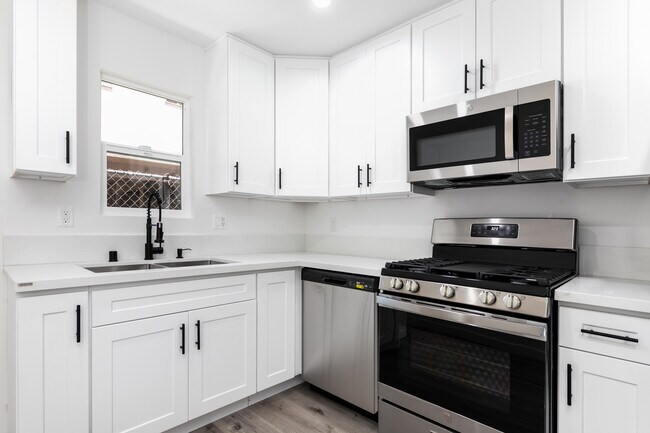 Welcome to your new sanctuary nestled in a serene neighborhood. This newly constructed residence offers a spacious layout with 2 bedrooms and 2 bathrooms, complemented by all new appliances including a fridge, stove, and microwave, ready for your convenience. You'll find a washer-dryer hookup in the kitchen for seamless daily routines, along with recessed lighting that enhances the ambiance throughout. Central heating and AC ensure year-round comfort, while laminate hardwood flooring adds durability and elegance to the space. Enjoy the tranquility of a quiet street and the luxury of an expansive rooftop seating area, perfect for relaxation and entertainment, all situated in a private street setting that offers both exclusivity and community. Don't miss out—schedule a tour today and make this your new home!