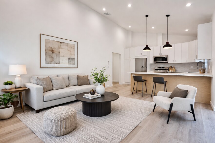 Welcome to this newly built, modern 1-bedroom, 1-bathroom ADU that feels like your own private retreat. Designed with contemporary style and comfort in mind, this bright and airy home offers an exceptional living experience in one of LA's most sought-after neighborhoods. Step inside to soaring extra-high ceilings and windows that flood the space with natural light, creating an open and inviting atmosphere throughout. The thoughtfully designed floor plan maximizes both space and functionality. The sleek kitchen features brand new stainless steel appliances, stunning quartz countertops and modern cabinetry perfect for both everyday living and entertaining. The spacious bedroom offers a peaceful retreat, while the beautifully finished bathroom showcases clean lines and premium fixtures. Enjoy your own private backyard deck, with separate outdoor spaces for each unit, perfect for outdoor dining, relaxing or entertaining. Additional highlights include an in-unit washer and dryer for ultimate convenience and easy permit street parking. Ideally situated near shopping, dining and entertainment, this turnkey home combines modern luxury with a prime central location.