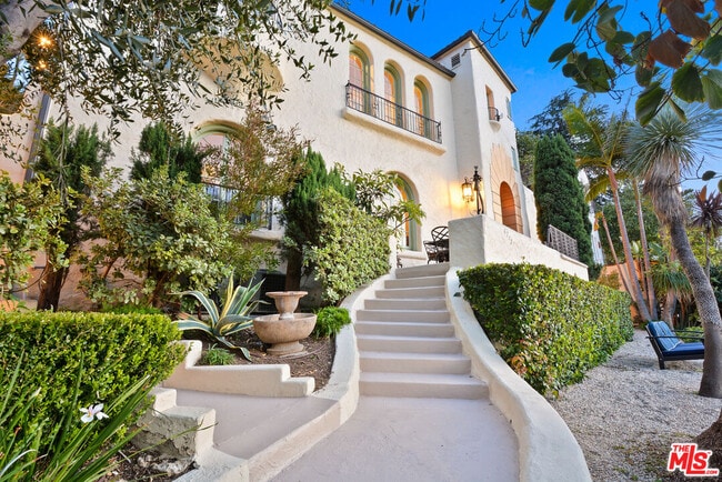 Rising just above Hollywood's iconic boulevard in Whitley Heights, the neighborhood's original celebrity enclave, welcome to Los Balcones, a 1923 Mediterranean villa that delivers sweeping views of Los Angeles with the kind of romance and architectural soul that defined early Los Angeles. Named for its multiple-layered terraces cascading toward the hills, the home embodies the spirit of its era: sun-washed stucco, arched windows, and sculptural stairways that feel lifted from a European hillside. Its signature front patios open to stunning, cinematic views of the Hollywood Hills, creating a rare indoor-outdoor procession where each balcony offers its own moment of morning light, golden hour glow, and the twinkling hillside at night.Inside, the home unfolds with the emotional resonance only historic architecture can deliver. The living room, framed by tall arched windows and a carved fireplace, feels suspended above the hills. A formal dining room with oversized windows captures the same hillside drama, while original details - arched doorways, hardwood floors, and vintage millwork - anchor the home firmly in its Old Hollywood lineage.The outdoor world is equally compelling. Behind the home, a large, verdant backyard stretches out in a way few hillside properties can claim - an expansive grassy lawn, mature greenery, and multiple gathering spots. A gated driveway and generous parking area provide rare convenience, while the outdoor firepit lounge becomes a natural evening magnet. A separate outdoor dining and living terrace - complete with spa and outdoor kitchen - creates a private resort-like setting for long table dinners, weekend lounging, or quiet nights under the canyon sky. At last, a unique 4th bonus suite on a separate level offers exceptional flexibility: ideal for long-term guests, creative workspace, or a secluded retreat that feels tucked away from the main residence.Beyond the home itself, the location is pure Hollywood magic. The home sits just a three-minute walk to the iconic Hollywood Bowl, making summer concerts feel like a private neighborhood ritual - with front-row views of the Bowl's famous pre-show searchlights cutting across the evening sky, and spectacular fireworks lighting up the hills a few times a year. And the magic doesn't end at the Bowl. A short stroll down the hill brings you to Musso & Frank Grill, the legendary 1919 dining room beloved by generations of writers and actors, while Hollywood Boulevard's Walk of Fame, historic theaters, restaurants, and cultural landmarks are all close enough to enjoy without ever needing to drive. But perhaps what makes Los Balcones truly irreplaceable is where it stands. Perched at the top of the Whitley Heights Historical Protection Overlay Zone, within an enclave once home to Valentino, Lombard, and other legends of the silent film era, Los Balcones is a once-in-a-lifetime opportunity to step into one of Los Angeles' most storied addresses. Here, history isn't just preserved; it's lived in, layered, and felt in every arch, terrace, and hillside view. The only thing missing is you. MLS ID 26757271