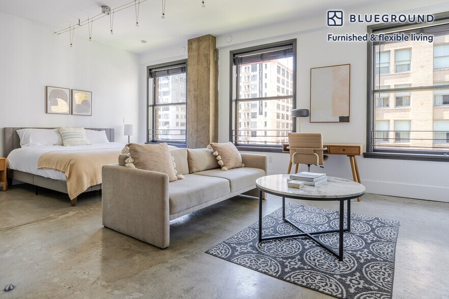 Discover the best of Los Angeles, with this studio apartment in Historic Core. It’ll be easy to simply show up and start living in this furnished apartment with its fully equipped kitchen, living room, and our dedicated, on-the-ground support. (ID #LAX1425) The advertised rate of $1,970/month is the lowest available price, based on a 10 month(s) and 18 day(s) stay with a move-in date of February 5, 2026. Rates vary depending on the duration of stay, season, and other parameters. For exact pricing and additional pricing components, please visit our website and enter your desired move-in and move-out dates. The rate is applicable when billed upfront; it can be higher if billed in multiple payments. Brokers are welcome to reach out. Were you looking for an unfurnished lease? Try Blueground instead and upgrade from unfurnished to furnished living: - Furnished at rates comparable to unfurnished - No setup or furniture costs - save thousands - Move-in ready - save time, just bring your suitcase Designed with you in mind Gorgeous furniture, fully equipped kitchen, smart TV, and a premium wireless speaker are just a few of the amenities you’ll find inside this studio apartment. Ideally located in Los Angeles, you’ll find a lot to love outside as well. When you’re ready to relax, you’ll be happy to discover every Blueground bedroom comes with superior quality mattresses, luxury linens, and cozy towels. We handle everything so you can simply show up and start living. This apartment also offers in-apartment laundry. Sleeping arrangements King Bed, 70.8in/180cm Amenities Building amenities unique to this studio apartment include an on-site: - Doorman - Dryer - Elevator - Washing machine - Parking - Pets allowed Arrival and ongoing support The entire apartment is yours to enjoy! Throughout your stay, you’ll have access to our Client Experience team through the Blueground App. You can schedule additional cleanings, submit maintenance requests, and view our neighborhood recommendations with just a few taps. We’ll share all details upon confirmation of your stay. Other things to note This Blueground apartment has flexible lease options, allowing you to book it for one month, a year, or more. Pets are welcome, though weight limits and breed restrictions apply and may incur fees. Parking is offered based on availability and is subject to a fee. We take great pride in ensuring every photo displayed is shot in our own units with our actual furnishings. That said, we regularly refresh our decor and furniture arrangement, which may differ from what’s pictured. [GO]