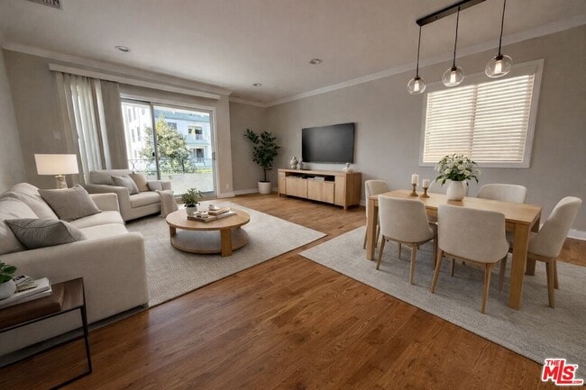 Bright & beautifully updated upstairs 2BD/2BA apartment in the heart of West Hollywood. Tucked on a quiet, safe street just one block from Melrose and minutes to La Cienega, this open-layout unit features large sun-filled windows, a private balcony, and stainless steel appliances. Enjoy the convenience of in-unit washer/dryer & two-car parking. Move-in ready and available now. No pets. MLS# 26642355