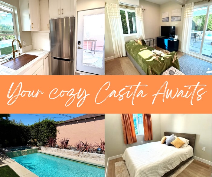 One bedroom, one bathroom -- peaceful bungalow in Westchester/Playa Vista/LAX in Los Angeles! Inside, you’ll find all brand-new appliances and furniture, including an in-unit washer/dryer, dishwasher, stainless steel kitchen suite, and two flat-screen TVs. The modern kitchen is fully stocked with cookware, dishes, and utensils—ready for you to move in and start living. The living room features vaulted ceilings, large windows, and stylish finishes, while the peaceful bedroom includes a queen bed, armoire, and serene views. A spa-like bathroom with marble vanity and porcelain tub/shower offers a hotel-quality touch. Stay comfortable year-round with air conditioning in every room, electric heat, and high-speed internet included. Enjoy secure, controlled access, a personalized electronic lock, and your own off-street parking space. Utilities (water, electricity, Wi-Fi) are fully covered.