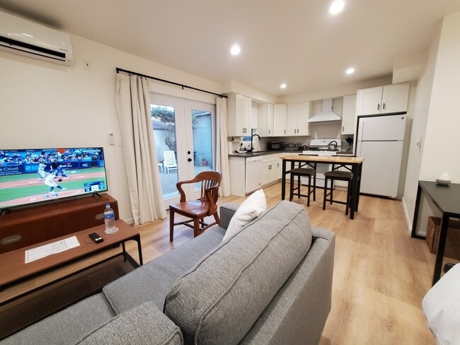 LARGE FURNISHED DETACHED GUEST HOUSE in West LA (between Culver City and Beverly Hills). Available min. 3 months up to 1 year on a month-to-month lease. This near new studio is VERY private and move-in ready. All utilities (water, gas, & electricity) and high-speed internet is INCLUDED in the rent. Unit features full size appliances, soundproof insulated walls, and dual pane windows. No fee to apply. Owner uses their own rental application and if approved, next step is screening/credit check (paid for by tenant). - French doors with retractable screens. View and use of private yard. - Full-size washer & dryer in unit - LG air conditioner / heater / fan with remote control. - Full-size gas range w/exhaust hood, refrigerator & dishwasher. Garbage disposal, microwave, toaster oven (and a toaster) Quartz counter tops, drip coffee maker w/starter filters, whistling tea kettle, double-stainless steel sink. The kitchen includes dishes, glassware, eating utensils, a blender, dish towels, microfiber cloths, pots, pans, cutting boards, food storage containers, broom, dustpan, a sweeper and more. - High eating table with 2 bar stools. - Large luxury shower with rain head and hand-held wand; 48" marble-top vanity with storage below, tall storage cabinet, overhead exhaust, toilet and includes 2 sets of towels. - Full-size sofa, coffee table, arm chair and a smart HDTV on top a chest of drawers. TV uses an antenna that gets full high def local broadcast channels, plus it has the usual array of apps such as Netflix, etc., plus 125 free channels from G o o g l e, plus it has Bluetooth. Tenant to use their own accounts for streaming. - 48" desk with office chair - Full/double bed (with a mattress protector) Nightstand with built-in USB, lamp. Includes three sets of sheets, 2 duvet covers, a lightweight but warm comforter (no feathers) and a summer blanket. Tall 5-foot wide closet with sliding doors, hanging space (with hangers) and mesh drawers. Separate storage cabinet for bed linens. - Blackout window coverings; lighting on dimmers. - The backyard is private with tables, chairs, chaise and an umbrella. - All utilities (gas, electricity and water) and high speed internet (from T-Mobile) are INCLUDED with the rent. - Unit is best for o n e person or a couple who don't mind sharing a double bed. Add $200/mo for additional person (both must be on the lease). - Parking is on a residential street that has only single family homes (no apartment buildings). - EV charging at nearby Trader Joes. No EV charging on premises. - Sorry, no pets, AND NO SMOKING!!! - Good credit score (min. 700) plus background check, stable income and good rental history. - This ADU is fully permitted by the City of Los Angeles Centrally-located on the West side of L.A. Next to Beverlywood, we are in friendly Reynier Village. The guesthouse is just 1 mile to Culver City, and 1.5 miles to Beverly Hills (and close to Century City and West Hollywood). About 5.5 miles to UCLA. Our weather is some of the best in the L.A. area! Nearby restaurants, bakeries, a public library and a city park. 15-20 minute walk to downtown Culver City where you can enjoy their many restaurants and a movie theater, or hop on the Metro Expo (E line) to go to Santa Monica and the beach, or head east to a short ride to The California Science Center, USC, Staples Center or Downtown L.A. The guesthouse is also walking distance to the historic Helms Bakery District, which has terrific restaurants and shops. Very close to the Interstate-10 (Santa Monica freeway) where you can easily connect to the 405 freeway. Not far away is Venice Beach, Marina del Rey, Hollywood, The Grove & Farmers Market and many other exciting neighborhoods. If you are in the medical profession, we are very close to many of the largest medical centers in West L.A: Kaiser Permanente West Los Angeles Medical Center is 0.9 miles away Culver Medical Plaza, Culver City is 1.6 miles away Cedars-Sinai Medical Center is 2.70 miles away UCLA Medical Center, Westwood is 5.6 miles away St. John's Medical Center, Santa Monica is 6.1 miles away Keck Medicine USC is 6.7 miles away We have an abundance of nearby grocery stores: Trader Joe's, Sprouts, Smart & Final, Whole Foods, Vons, Pavillions, and Erewhon. Nearby Century City has a Gelson's and a Ralph's. We also have a small convenience store and a liquor store a couple blocks away. Not far are three shopping centers where there is a Starbucks, CVS, Ross, Target, 24 Hour Fitness Gym with a pool, Pollo Loco, other restaurants, and more .Plus, close by is the luxurious Westfield Century City mall with Macy's, Bloomingdales, Nordstrom's, and many more popular retailers, great restaurants, movie theaters and an Apple store! Available min. 3 months, up to 1 year on a month-to-month lease. Cleaning fee of $150.00 will be deducted from security deposit upon move-out. All utilities and internet is included in the rent. No smoking inside unit. If interested, the lease and house rules will be shared prior to signing. Tenant to pay $40 for screening report by TransUnionSmartMove.
