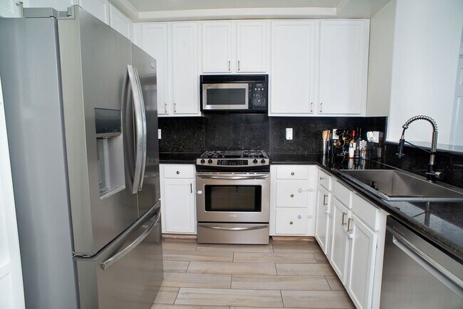 Welcome to this beautifully upgraded and generously sized 3-Bedroom 3 bath condo. Almost 1500 sqft offering modern comfort, style, and convenience. Located in a well-maintained community with excellent amenities, this home is move-in ready and thoughtfully upgraded throughout. Contemporary kitchen upgrades including a brand-new stainless-steel refrigerator with water and ice dispenser, stainless steel dishwasher, new garbage disposal, new deep kitchen sink, and stainless-steel faucet. The kitchen boasts white cabinetry, granite countertops, a breakfast bar, and a newer tile floor that extends through the hallway. The spacious living room opens to a private balcony and connects seamlessly to a formal dining area, complete with a cooling ceiling fan. New carpet throughout the home for a fresh, clean feel. The master suite is located on one end of the unit, offering privacy and comfort with a ceiling fan, large walk-in closet, dual sinks, separate tub and shower. Two additional bedrooms—each with their own ceiling fans—are on the opposite side of the home, sharing a modern secondary bath with a new tile floor and tub/shower combo. Fully updated bathrooms featuring modern light fixtures, sleek faucets, LED mirrors, new medicine cabinets, and fresh paint. There's also a convenient powder room for guests. New washer and dryer in a dedicated laundry space with shuttered doors along with Smart thermostat for efficient and convenient climate control. Two car parking included. Conveniently located near California State University, Northridge (CSUN), this condo is perfect for professionals, students, or anyone seeking a modern, low-maintenance home in a prime location. Water is included in the rent. No pets allowed. Don't miss your chance to live in this bright, updated, and spacious condo—schedule a tour today!