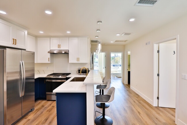 It is a brand new beautiful property with a great kitchen/living space! The Common Areas and Bedrooms are furnished. Our brand new apartments are close to USC and Ralphs! You also get a full bed, desk, and a wardrobe/closet. Bring a friend!! You may rent the entire room out for yourself or with someone else :)