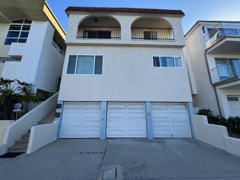 OCEAN VIEW!! 2 BLOCKS TO THE BEACH!! This lower unit in a duplex offers hardwood floors, an upgraded eat-in kitchen with quartz counter tops and stainless steel appliances, good size bedrooms with lots of closet space, ceiling fans and new light fixtures and blinds, a glass sliding door from the living room goes out to a small patio. There is a washer/dryer in the garage which is shared with the upper unit. This unit comes with 2 garage spaces. Excellent location across from the park and just minutes to downtown Manhattan where you can enjoy great restaurants and shopping! ONLY TINY PETS ALLOWED!! AVAILABLE NOW!!