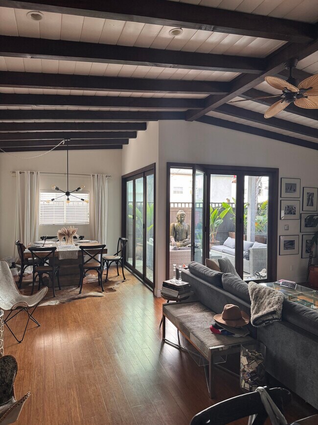 One floor living by the beach. Perfect for family with young children or family who don't want to climb stairs. This beautiful indoor out door living space has three bedrooms two bathrooms with a serene zen patio. It is a 2-minute walk to the beach, a 5-minute walk to restaurants in downtown Manhattan Beach, two parks, and Grand View elementary school is also only a 5 minute walk. It has 2 garage parking and plenty of street parking. There is another 2bedroom unit on top of the garage with a separate entrance. Please do not disturb tenants.