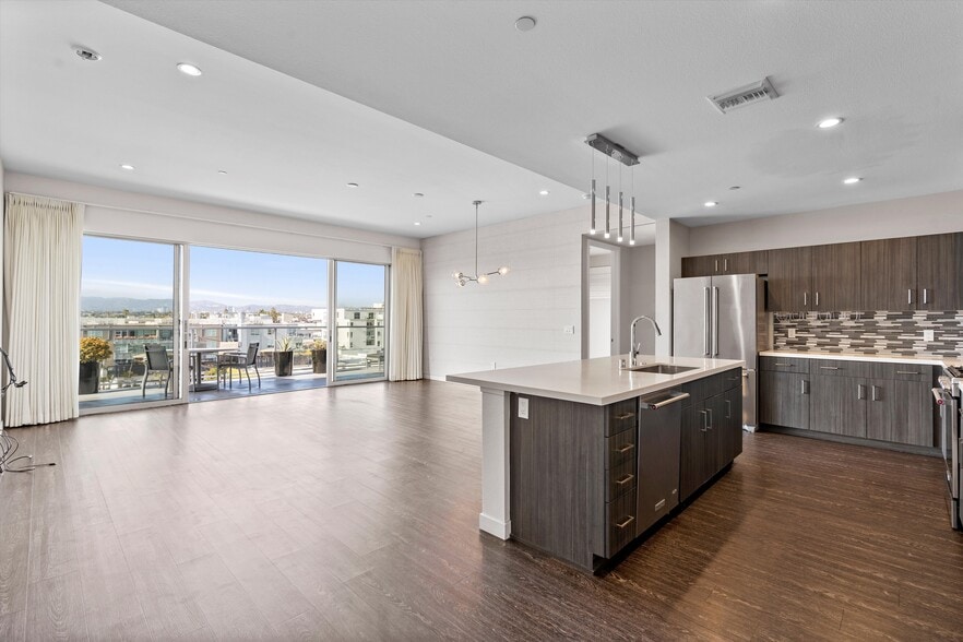 Available second week of March! Experience indoor-outdoor living in North-facing penthouse in X67, a newer construction condo building in the heart of the Marina Arts District. Enter to open living space and large kitchen with island featuring stainless steel Kitchen Aid appliances and quartz countertops. Two primary bedroom suites, both with a small walk-in closet and a separate wall closet and feature beautiful bathrooms with dual sinks and modern fixtures. City skyline and mountain views from every room. Both bedrooms and living area open to approximately 400 SF balcony with WOW factor! Building has an onsite concierge, an outdoor lounge & pool area with cabanas, fitness center, and a community recreation room. 2 car side by side parking with EV charging available nearby. Short distance to Marina Marketplace shopping, restaurants, and AMC theater, easy access to freeways, and the beach!