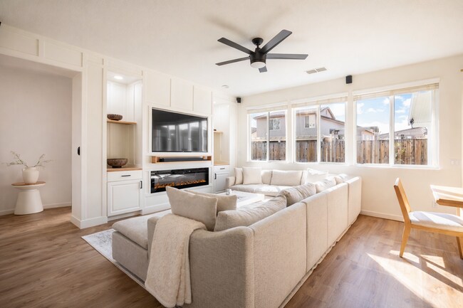 Welcome to this beautifully furnished 3-bedroom, 2-bath home designed for comfort, privacy, and convenience. The home features a smart split-floor plan—the master suite is on one side, separated by the kitchen and living area, while two guest bedrooms and a full bath are on the opposite side. This layout is ideal for traveling nurses, coworkers, or families who want to share a space while still enjoying privacy. The open living and family room are perfect for relaxing, watching movies, or playing games. The fully equipped kitchen includes cookware, utensils, and BBQ essentials for both quick meals and home-cooked dinners. • Bedroom 1: Queen bed with new furniture and comfortable bedding • Bedroom 2: Cozy guest room with a crib and extra supplies for families • Guest Bathroom: Full shower/tub with shampoo, conditioner, and body wash • Master Suite: King bed, double-sink bathroom, walk-in closet, and clothing steamer • Laundry: Washer and dryer included Enjoy the updated backyard with outdoor TV, plus Netflix and high-speed Wi-Fi. The garage offers extra fun with a pool table and a fully equipped home gym, along with board games for all ages.