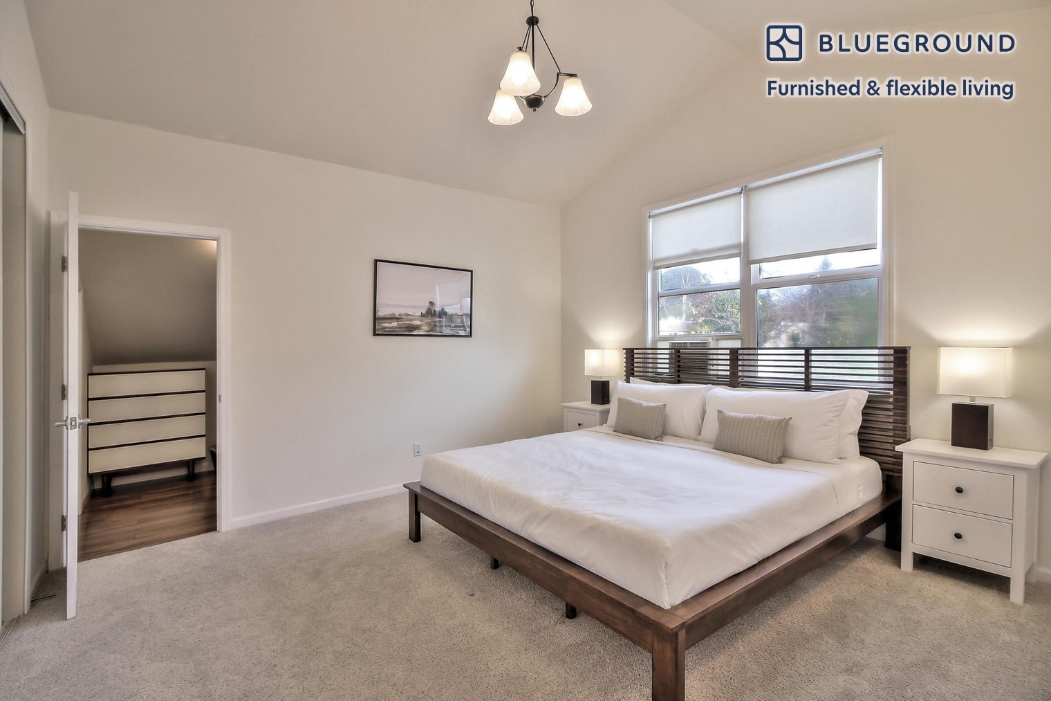 Show up and start living from day one in Mountain View with this comfortable two bedroom Blueground townhouse. You’ll love coming home to this thoughtfully furnished, beautifully designed, and fully equipped Mountain View home. (ID #SFO1589) The advertised rate of $3,510/month is the lowest available price, based on a 2 month(s) and 2 day(s) stay with a move-in date of February 10, 2026. If you’re looking for a 1-year stay, the rate is $4,430/month. Rates vary depending on the duration of stay, season, and other parameters. For exact pricing and additional pricing components, please visit our website and enter your desired move-in and move-out dates. The rate is applicable when billed upfront; it can be higher if billed in multiple payments. Brokers are welcome to reach out. Were you looking for an unfurnished lease? Try Blueground instead and upgrade from unfurnished to furnished living: - Furnished at rates comparable to unfurnished - No setup or furniture costs - save thousands - Move-in ready - save time, just bring your suitcase Designed with you in mind Gorgeous furniture, fully equipped kitchen, smart TV, and a premium wireless speaker are just a few of the amenities you’ll find inside this two bedroom townhouse. Ideally located in Mountain View, you’ll find a lot to love outside as well. When you’re ready to relax, you’ll be happy to discover every Blueground bedroom comes with superior quality mattresses, luxury linens, and cozy towels. We handle everything so you can simply show up and start living. This townhouse also offers in-townhouse laundry. Sleeping arrangements King Bed, 70.8in/180cm Queen Bed, 63in/160cm Amenities Building amenities unique to this two bedroom townhouse include an on-site: - Dryer - Washing machine - Parking Arrival and ongoing support The entire townhouse is yours to enjoy! Throughout your stay, you’ll have access to our Client Experience team through the Blueground App. You can schedule additional cleanings, submit maintenance requests, and view our neighborhood recommendations with just a few taps. We’ll share all details upon confirmation of your stay. Ideally Located This furnished home is located in Mountain View, in Santa Clara County. It is named for the unbeatable views of the Santa Cruz Mountains. Situated in the southern end of the San Francisco Bay Area, residents enjoy the many parks, specifically Shoreline Park, which is the largest in Mountain View and includes an amphitheater and golf course. Go for a walk or run on the San Francisco Bay Trail. In addition, Stevens Creek goes through Mountain View and empties in Shoreline. A paved path for pedestrians and bikes runs alongside the creek, which is ideal for nature lovers. The nearby cities of Palo Alto, Los Altos and Sunnyvale are all easily connected by bus and rail service. Other things to note This Blueground townhouse has flexible lease options, allowing you to book it for one month, a year, or more. Parking is offered based on availability and is subject to a fee. Please keep in mind that this is a walk up building. We take great pride in ensuring every photo displayed is shot in our own units with our actual furnishings. That said, we regularly refresh our decor and furniture arrangement, which may differ from what’s pictured. Also note - There are stairs leading up to the entrance of this apartment, but no elevator [SI]