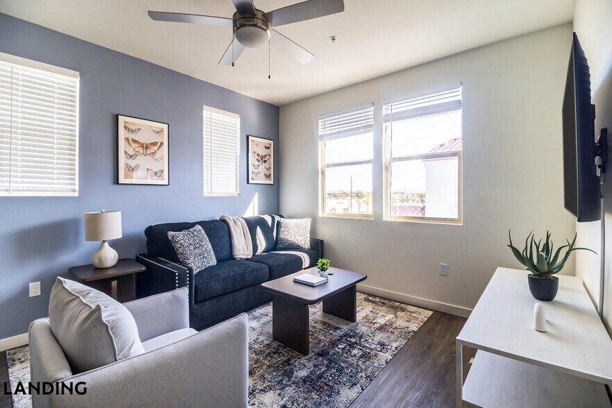 Landing is a top-rated, fully furnished apartment network with thousands of homes across 250+ U.S. cities. With premium amenities, a mobile app to manage your stay, and 24/7 support. Our apartments have everything you need for monthly and longer stays. 6-Month+ Stay base rent: starts at $2325/mo 12-Month+ Stay base rent: starts at $2512/mo Landing's apartments at Amano are designed for comfortable, easy living, with the ability to stay as long as you like. All Landing apartments include: - Fast Wi-Fi - Stylish furnishings - Fully-stocked bathroom - Smart TVs - Comfortable bed - Professionally cleaned - Guest support Stay longer for cheaper! The longer you stay, the bigger your discount. Price advertised is for a 12-month stay, including all utilities and fees, and may vary based on availability. We manage multiple units at this property. While all feature a similar style and furnishings, the layout and specific design elements may vary slightly from the photos provided. Some of the nitty-gritty: a background check and proof of income are required; we're completely smoke-free; pet-friendly options are available; parking is subject to availability.