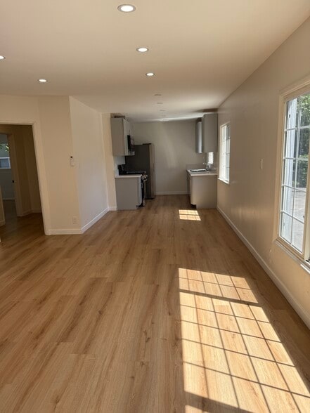 Step into a large open-concept living, dining, and kitchen area perfect for relaxing or entertaining. The brand-new kitchen features sleek cabinetry and all-new built-in appliances, including a refrigerator, dishwasher, stove, and microwave.