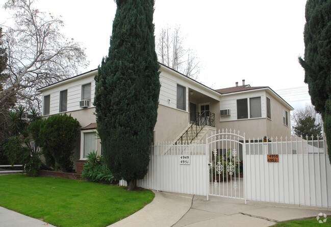 Charming Older gated 5 unit building, located in the area that is called Toluca Woods, with lots of character. Each unit is like a small house with Hardwood floors, newly Tiled kitchen. Apartment is newly refreshed in light grey paint with white crown moldings. This Apartment has its own front and back doors. Gated enclosed property with large entertainment deck off of back door. Large closets, ceiling fans, air conditioner. New kitchen floor. Stainless steel stove and refrigerator. Garage with Garage Door Opener. Please call for an appointment to see this lovely apartment.