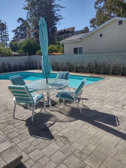 Northridge 2 bedroom,1 bath Pool Home with a 2 car Garage Parking. This stunning and remodeled home has grey laminate and grey tile flooring. Remodeled Bathroom with shower/tub combination, dual pane windows, and living room with a fireplace.New designer painted kitchen with dishwasher and range, Washer and Dryer hook ups. Completely fenced private backyard with block walls, large paver patio and a beautiful pool. Awesome location near CSUN, public transportation,shopping and restaurants.. Tenant pays all Utilities. Must have An