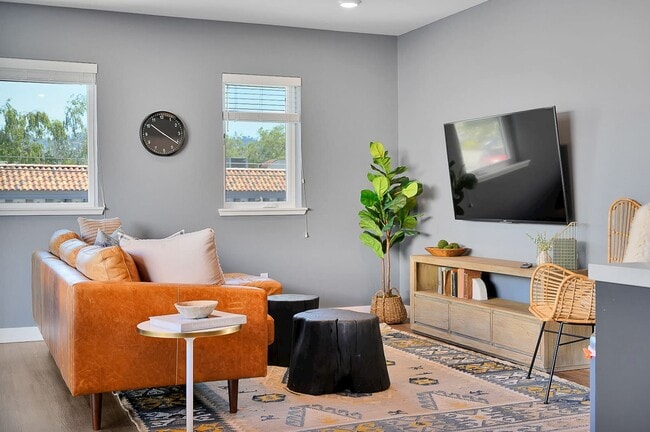 Your new studio, 1- or 2-bedroom apartment features sun-lit, open concept spaces, brand new stainless steel appliances, and finishes chosen for style and durability. (Select studio apartments also feature robotic and space saving modular furniture!) Outside your door, you’ll discover comfortable and convenient amenities. Maya features central air conditioning. The furnished community lounge comes equipped with a flat-screen TV, perfect for movie nights or gathering for a big game, a wet bar, and access to the outdoor lounge. Head upstairs to the rooftop deck to enjoy your morning coffee with views of Downtown and San Francisco. Other amenities include parking, package lockers, and secure bike storage.