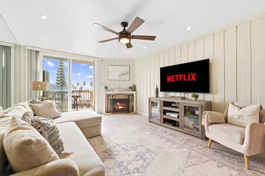 The advertised rate of $12,782/month is the lowest available price, based on a 30 day(s) stay with a move-in date of August 18, 2026. Rates vary depending on the duration of stay, season, and other parameters. For exact pricing and additional pricing components, please visit our website and enter your desired move-in and move-out dates. The rate is applicable when billed upfront; it can be higher if billed in multiple payments. Feel at home in this two-story, ocean-facing condo at North Coast Village. Just steps from the sand, this 2-bedroom, 2-bathroom condo sleeps up to 6 comfortably. This condo features a fully equipped kitchen, fast Wi-Fi, and two private decks perfect for sunrise coffee or sunset cocktails with ocean breezes. Enjoy access to resort amenities including 2 heated pools and 2 hot tubs, a full fitness center and sauna, a game room with ping-pong and billiards, miniature golf and putting green, lush tropical gardens with koi ponds and waterfalls, and BBQ grills and picnic areas. This condo is in a walkable location, 10 minutes to Oceanside Pier, harbor restaurants, and downtown shops. It is in a quiet location within the resort, perfect for relaxing stays. This condo does not have air conditioning, but each room is equipped with ceiling fans, and thanks to the close proximity to the ocean, you’ll enjoy refreshing sea breezes throughout your stay. Pets are not allowed in the resort complex. [SI]