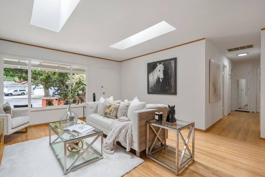 Relax in paradise with this charming 3-bedroom, 2-bathroom home nestled on just under an acre of lush space with two creeks, a naturally occurring pool, flowers, fruit trees, a fire pit, a canopied deck, outdoor eating areas, and a detached office. Located steps from San Pedro Valley Park and just a 5-minute drive to the beach and major supermarkets, this single-level 1950s home offers a natural beachy vibe and plenty of indoor and outdoor spaces to explore and relax. Ideal for nature lovers and families, this home is perfect for 4-5 adults or a small family. Designed with you in mind, this light and airy home features a large family room with a 3D television connected to Xfinity Basic and premium streaming channels including HBO, Disney, Hulu, Starz, and Netflix. The fully equipped kitchen and welcoming living spaces ensure you feel at home. With 3 bedrooms, 2 full bathrooms, an office in the house, and a detached office in the cabin, this home is set up for guests who want to work or school from home while enjoying the ample outdoors during downtime. Parent supervision is recommended for younger kids outside as the terrain is uneven with sharp drops. There is a year-round creek on the property. The property is located in a welcoming neighborhood with access to nearly an acre of fenced-in land, two creeks, and a small pool where the creeks meet, perfect for swimming. The neighborhood is great for kids 8 and up to roam free, with many trees and a bridge to explore. At the end of the street, you'll find an enormous open space with dozens of trails for hiking, biking, and jogging, including one that leads to a lake and a waterfall. A 10-minute bike trip or 5-minute car ride brings you to the beach and major supermarkets. A small shopping center for basics is just a 5-minute walk away. Terra Nova High School, a top-rated local high school, is within walking distance. Photo furnishings are representative, not actual. Any supplies beyond the starter welcome packet are up to the guest to replenish as we do not restock these items. This is an industry-standard practice. Cleaning supplies are not stocked due to safety issues. [SI]