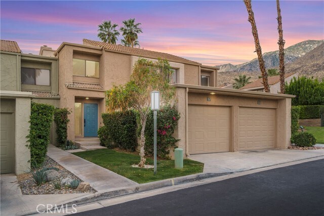 Designed by Modernism Week '19 architect Hugh M. Kaptur, this Canyon West Estates townhome sits between the historic Mesa District and Twin Palms — outside the tourist corridor, minutes from dining, shopping and recreation. Newly renovated 2026. Formal entry, high ceilings, tile floors. Open main floor: sunken living room with gas fireplace and motorized sheers; showpiece kitchen with walnut cabinetry, quartz counters and concealed appliances; powder bath; laundry; oversized garage; mountain-view patio. Primary suite: mountain-view deck, three closets, dual-sink vanity, three-mode walk-in shower. Second en suite bedroom accommodates a king. Upper alcove ideal for workspace. Pools, hot tubs, tennis, fitness, clubhouse — HOA included. Gas, forced air, AC. Unfurnished. 12–18 month lease. Tenant pays utilities. First month + $2,500 deposit. ADA guide animal with documentation only, no pets. MLS# IV26078086