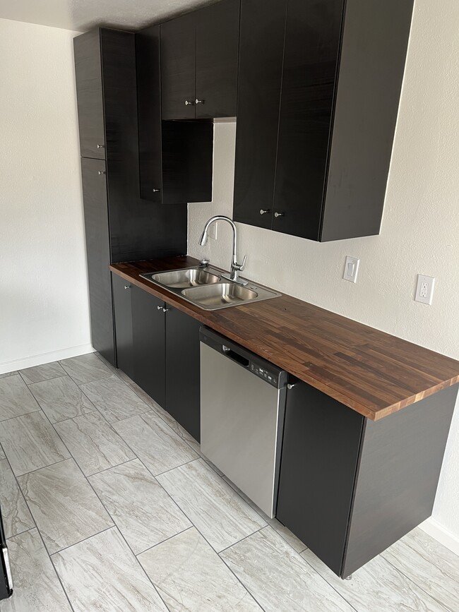 Completely remodeled spacious 900 sq ft upstairs unit features new kitchen cabinets and stainless steel appliances, new bathrooms, new tile and carpet flooring, two balconies, indoor laundry hook ups, natural gas fireplace, new energy efficient windows and sliding glass doors, central air and heat and more. Location features close proximity to Palmdale Regional Medial Center, Palmdale Transit Village, Antelope Valley Mall and the Palmdale Civic Center. Walking distance to Metrolink station. Enjoy sweeping mountain views in a 10-unit small residential apartment building. Lighted carport and gated community included for added comfort and security.