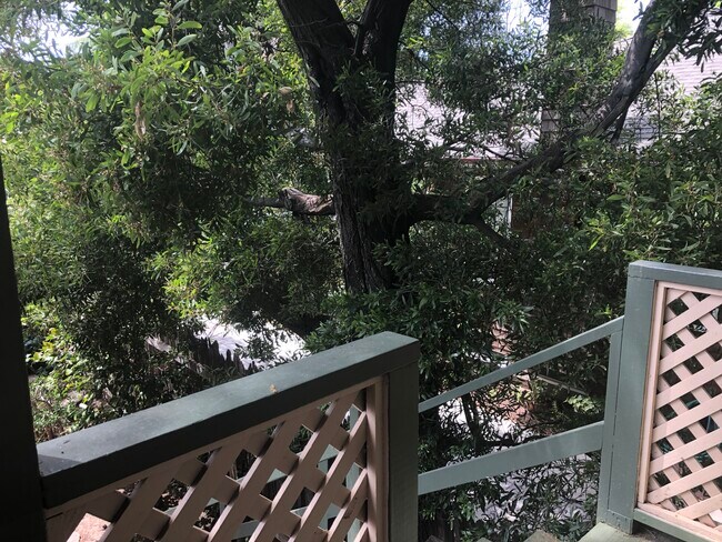 This lovely, sunny, top floor apartment doesn’t have common walls with another apartment. It is nestled under a beautiful oak tree providing refreshing shade. It has updated kitchen and bath, wooden floors, spacious bookcase and private patio. Located near shops, restaurants and Stanford University. Available July 24th.