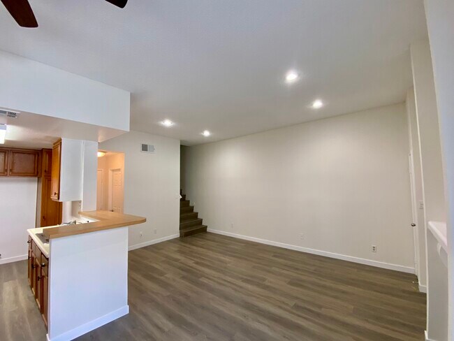 Spacious 4 Bedroom 2 and a half Bath Townhouse with 2 car attached direct access finished garage. The unit is centrally located within the complex and close to the pool. Patio off the dining area, High ceilings and a decorative fireplace in the living room, Laundry with Washer and Dryer, Primary bedroom with vaulted ceilings and balcony, Freshly painted with newer appliances and flooring throughout.