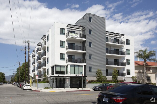 These sleek and modern units feature beautiful kitchens completed with quartz countertops and premium energy efficient appliances, in-unit washer and dryer machines, central A/C. The living areas and bedrooms are bright and spacious with a thoughtful architectural layout to maximize all living space and create enough storage space. Our two and three bedroom units include a private balcony. Most of the units have a designated parking spot and there is usually additional parking available on Roscoe Blvd.