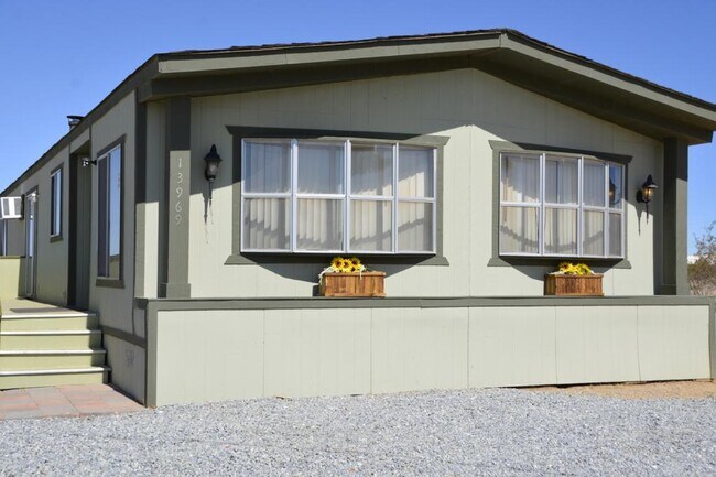 Very cute manufactured home Enjoy the privacy of the area while being centrally located off of Palmdale Road and near all the retail development in nearby Victorville. This home has 2 bedroom and 2 bathroom and features an en-suite master complete with dual vanity and a separate shower and soaking tub. Kitchen features white cabinets with maple counters and black on black cooktop, new kitchen flooring, fireplace, living room, dining room, family room, kitchen with bar stool sitting area, outside shed approximately 10ft by 4ft. Owner pays for electric and water. Home is on propane. Home comes with stove top, built-in oven, and dishwasher. Home also has refrigerator, but owner does not warrant refrigerator. Central heating and AC built into wall. Home is approximately between 1,150 to 1,200sqft. Home has new furnace and water heater. Home is excellent for truck drivers, boats, RV parking! This home has no garage, but has large storage shed. ** Note: This property is fully fenced. This home has a No Pet Policy. Contact Charlie Galvati at: .