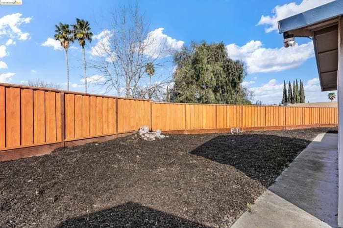 Listing description: 3 bedrooms, 2 full baths located on a cul-de-sac. Well-designed layout with updated kitchen, sunlit living room. and dining area. Master suite, detached 2 car garage, and interior laundry. Step out to a big yard that has endless possibilities! Conveniently located near bart, freeway, and shops.