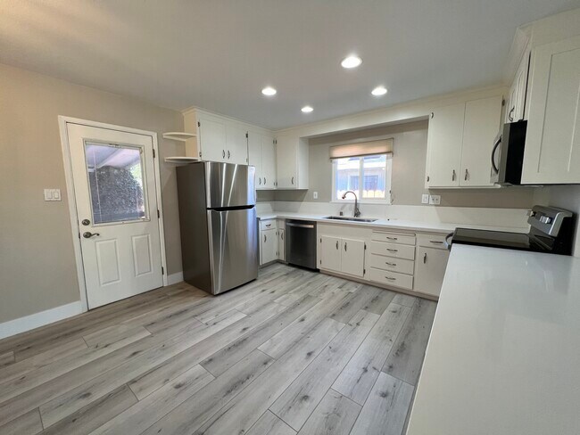 Welcome to this fully remodeled and upgraded home from floors to ceiling. New laminate flooring throughout, fresh paint, central cooling and heating. The home features open floor plan, a statement fireplace, bright, sun filled living room with panoramic sliding doors that open to front porch-patio deck. This home offers 4 bedrooms and 2 1/2 baths. This includes, a primary en-suite with full bathroom and walk-in closet, and 3 additional bedrooms, plus second full bathroom and powder room. Large kitchen with new appliances and storage; spacious laundry room includes washer/dryer unit. Two car driveway, ample street parking and a large backyard. Low maintenance, drought resistant landscaping (in progress). Elementary, Junior High & High Schools , city parks are all within walking distance. Two miles away, in downtown Pittsburg, at the Marina, access world-class fishing & water sports in 1000 miles of waterways in the famed Sacramento Delta. After a day of fun in the river, take BART, or the Highway 4 located one mile away from the home for an evening dinner in San Francisco.