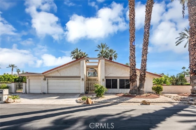 Located in the gated Presidential Estates community of Rancho Mirage, this spacious 2,700 sq ft home features an open floor plan with high ceilings, 3 bedrooms, and 3.5 bathrooms, including a large primary suite with dual bathrooms and an oversized walk-in closet. The kitchen opens to the main living areas and is complemented by a unique atrium between the kitchen and formal dining room. Additional features include a formal living room, wet bar, ample storage, a two-car garage plus a separate golf cart garage. The large walled lot offers a spacious patio and fruit trees. Community amenities include a pool, spa, and tennis courts with a low HOA, all conveniently located near shopping, dining, golf, and casinos. MLS# CV26047759
