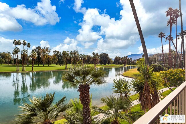 Available for Sale or Lease One of the most desirable places to live in Rancho Mirage, Desert Island is a prestigious guard-gated community surrounded by serene lakes and a lush golf course. This spacious residence is ideally located on the highly desirable east side of the building, offering peaceful morning sun and sweeping views of the sparkling lake with dramatic water feature, the golf course, and surrounding mountains. Facing both the lake and mountains, the expansive patio and main living areas provide exceptional privacy and tranquility perfect for relaxing or entertaining while enjoying the natural surroundings. The unit is move-in ready and features newer A/C and heating systems. Upgrades include plantation shutters, granite countertops in the kitchen and baths, tile flooring, solid-core doors, and updated hardware throughout. The open kitchen flows into the living area and views, highlighted by a lighted backsplash and breakfast/cocktail bar. Desert Island offers 24-hour guard-gated security and beautifully maintained grounds with walking paths, birdwatching areas, benches, fruit trees, tennis courts, a fitness center, swimming pools, and spas. Ideally located in the heart of Rancho Mirage, adjacent to Eisenhower Medical Center and minutes from shopping, theaters, El Paseo, downtown Palm Springs, fine dining, casinos, medical facilities, and the airport. Offered unfurnished. Minimum 1-year lease required. MLS# 26648125PS