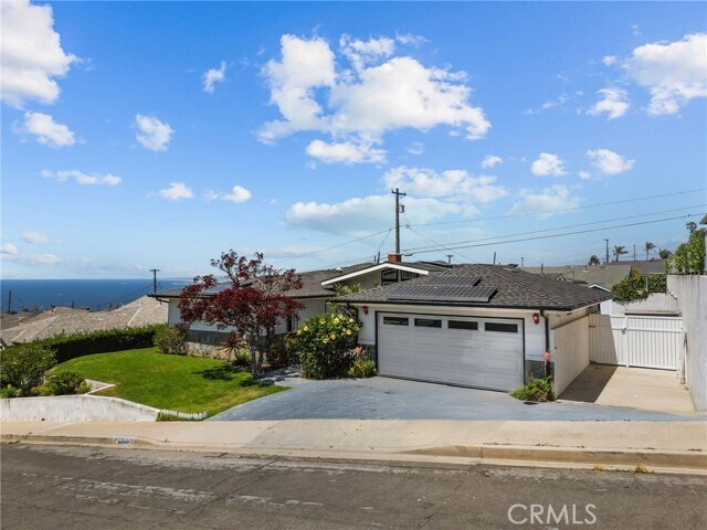 This beautiful property features 4 bedrooms and 3 bathrooms, offering a spacious 2,446 square feet of living space on a generous 7,427 square foot lot. The living room, complete with a cozy fireplace, provides a welcoming atmosphere perfect for relaxing or entertaining guests. This home is equipped with modern amenities including solar panels, air conditioning, and central heating, ensuring comfort and energy efficiency all year round. Enjoy the convenience of two living rooms, providing ample space for activities and entertainment. The kitchen is a chef’s delight with its modern appliances, ample counter space, and elegant cabinetry. This home features stunning ocean views throughout that enhance the living experience, offering a serene and picturesque backdrop. Additional features include a two-car garage and ample driveway parking. The property is located near the charming Riviera Village, known for its boutique shops, dining options, and vibrant community events ad local beaches. MLS# SB26089820