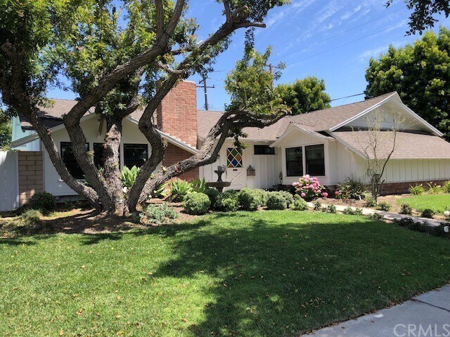 Popular Plymouth Like Model on a large corner lot with remodeled kitchen and bathrooms. Nice features include: Hardwood flooring, new carpet, new interior paint, new dual paned windows in front, recessed lights, smooth ceilings. Large spacious backyard with pool. Prime Center of the Tract Location. Walk one block to Rossmoor Elementary, Lee Elementary and only a few blocks to Weaver Elementary. Move in this Summer and be ready for the New School Year.