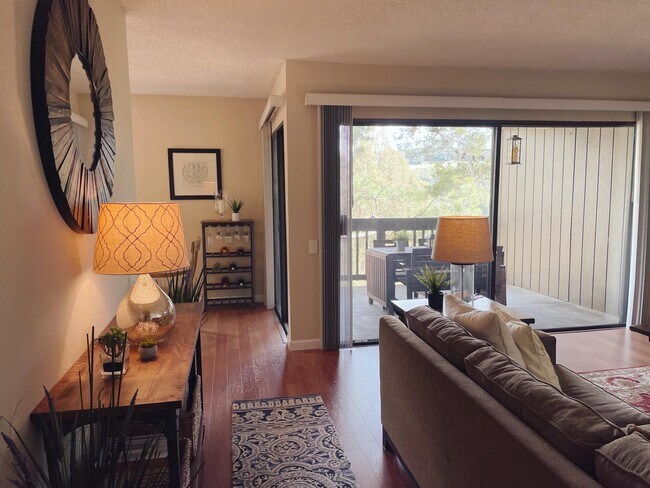 This beautiful 2 bedroom, 2 bathroom condo with balcony in the San Carlos hills is available June 1st, 2021. Located in Brittan Heights. You'll have access to 2 pools, 2 tennis courts, and a clubhouse. The unit has a washer and dryer, dishwasher, stove, microwave, instant hot at the kitchen sink, and all appliances have been updated in the last few years. The main living areas have hardwood flooring, the bedrooms are carpeted, and the balcony has a peaceful view of the canyon. In just a few minutes walk, you can be at one of the many local parks or hiking trails. Convenient location with easy access to Highway 280 – 30 minutes from Mountain View, 35 minutes to San Francisco, and 25 minutes to Cupertino. This unit does not allow pets or smoking. 1 year lease. Security deposit $3150 and credit check fee of $25 per person. Unit is available to show with appointment and masks will be required.