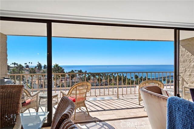 Enjoy the stunning panoramic ocean view from this beautiful condo situated right above the Pier in San Clemente. Just steps to award winning beaches and a short stroll to shops and restaurants on Avenida Del Mar, the location of this home is absolutely perfect. The sparkling ocean view is captured in floor to ceiling sliding glass doors that open up the main living areas to the blue pacific. The upgraded open concept floor plan allow seamless entertaining and sunset viewing. Kitchen features custom cabinets, solid surface countertops and stainless appliances. Both the dining room and living room are situated to maximize your enjoyment of the ocean view. The master suite is quite spacious with a large closet and ensuite bath. Custom tile shower and cabinetry compliment the master bath. The secondary guest bedroom has plenty of space to maximize the bedroom layout. An additional guest bath has solid glass doors and upgraded fixtures. An enclosed den space off the living room is the perfect spot for an office, additional family room or could even be a 3rd bedroom. The expansive ocean view deck is an extension of the home. Multiple outdoor sitting areas offer plenty of opportunity to enjoy the ocean and pier views. Home is being rented furnished so you can just move right in and enjoy. There are two parking spots and additional storage in the underground parking garage. Villa Granada features a community pool and hot tub. Come live the San Clemente lifestyle today!