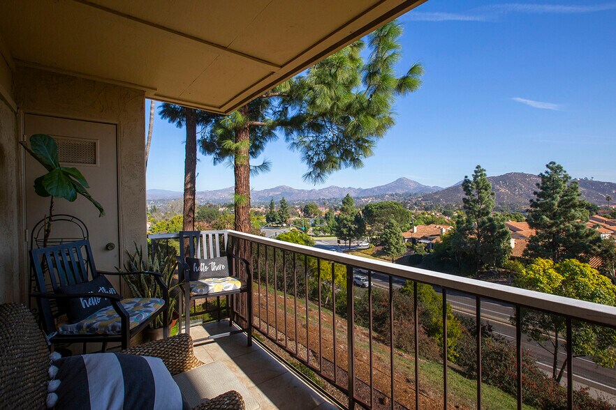 Second-Floor Condo with Panoramic Hillside Views + Resort-Style Amenities Enjoy sweeping hillside views from this light-filled, third-floor 2BR/2BA condo with private balcony and access to pools, gym, tennis courts, and Bernardo Heights amenities. Set on the second floor in the desirable Bernardo Greens community, this remodeled 2-bedroom, 2-bath residence offers exceptional privacy, natural light, and expansive hillside views that stretch for miles. The open living area flows seamlessly to a private balcony, creating an ideal indoor-outdoor setting for morning coffee or sunset relaxation. The thoughtfully designed floor plan features two generously sized bedrooms with oversized closets, built-in cabinetry for ample storage, and updated finishes throughout. The kitchen opens to the main living space and is complemented by durable flooring, modern lighting, and a clean, contemporary feel. A full-size washer and dryer inside the unit adds everyday convenience, while a detached garage provides parking plus additional storage. Residents enjoy a resort-style amenity package, including a community pool and spa, fitness center, tennis courts, and beautifully maintained grounds. Rent also includes membership to the Bernardo Heights Community Center, offering additional recreational facilities and social amenities. Ideally located near shopping, dining, golf courses, and easy freeway access, this home combines scenic living with everyday convenience. Rent: $3,500/month Tenant pays all utilities Dogs allowed with $500 deposit Located within the Bernardo Greens / Bernardo Heights community