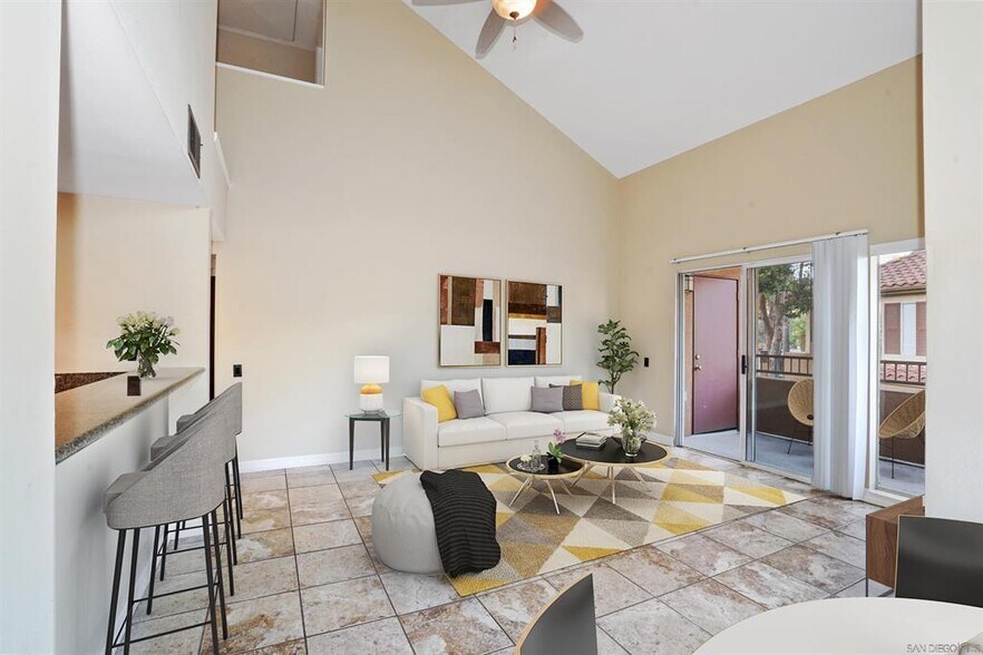 Unfurnished - TOP FLOOR, CORNER UNIT, SOUTH-FACING (w/ EAST FACING BALCONY) OVERLOOKING GREEN LANDSCAPING & POOL.” WHAT WE LOVE: *Towering ceilings, natural light & clear story windows frame the HUGE living, dining & kitchen spaces creating a signature look and feel for this top floor unit. *Kitchen is updated feat. granite counters, stainless appliances, custom floor & breakfast bar. *Bedroom, bath & laundry all in the downstairs while master bed & bath on the upstairs *Living room balcony overlooking the interior greenbelts, mature canopy & the upscale pool of Villa Taviana. *Master has its own balconette, vaulted ceilings, HUGE double closets & bath en suite.